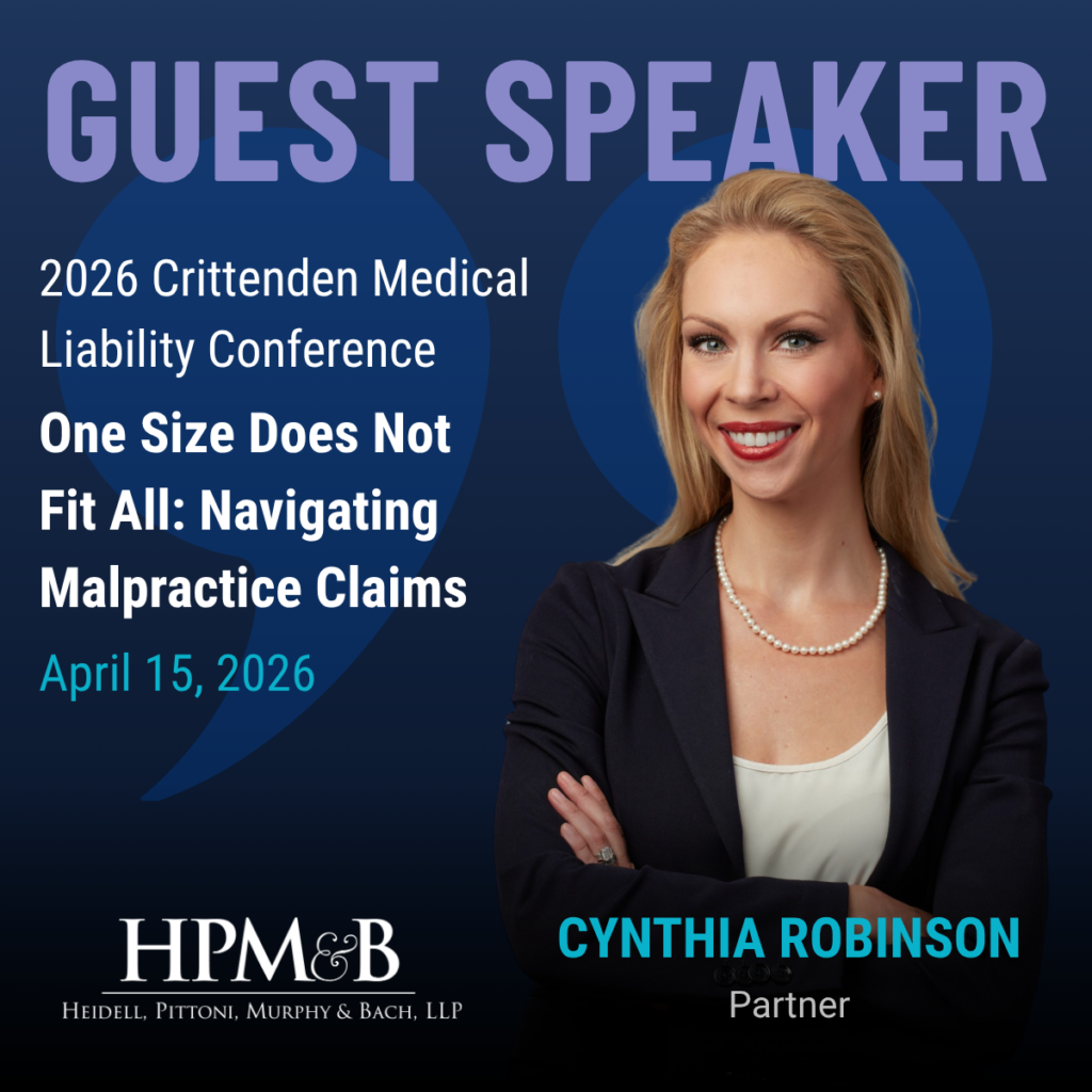 HPMB is pleased to share that Cynthia Robinson will be speaking at the Crittenden Medical Liability Insurance Conference on April 17.